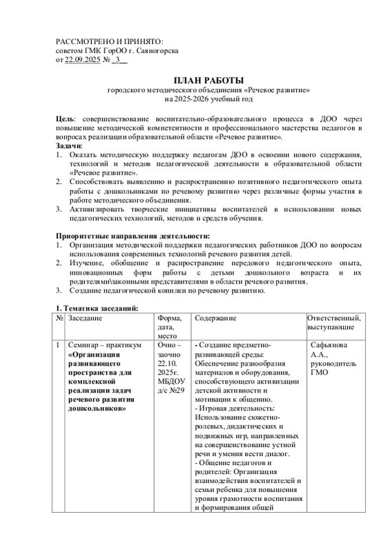 Я, Сафьянова Анастасия Алексеевна, воспитатель МБДОУ д/с № 29 «У Лукоморья», высшая к/к. С сентября 2025 года назначена руководителем ГМО «Речевое развитие».